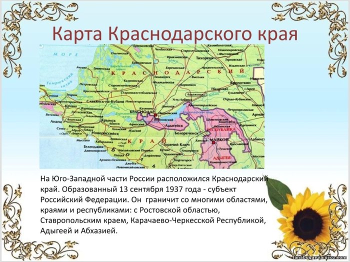 Карта Краснодарского края кубановедение